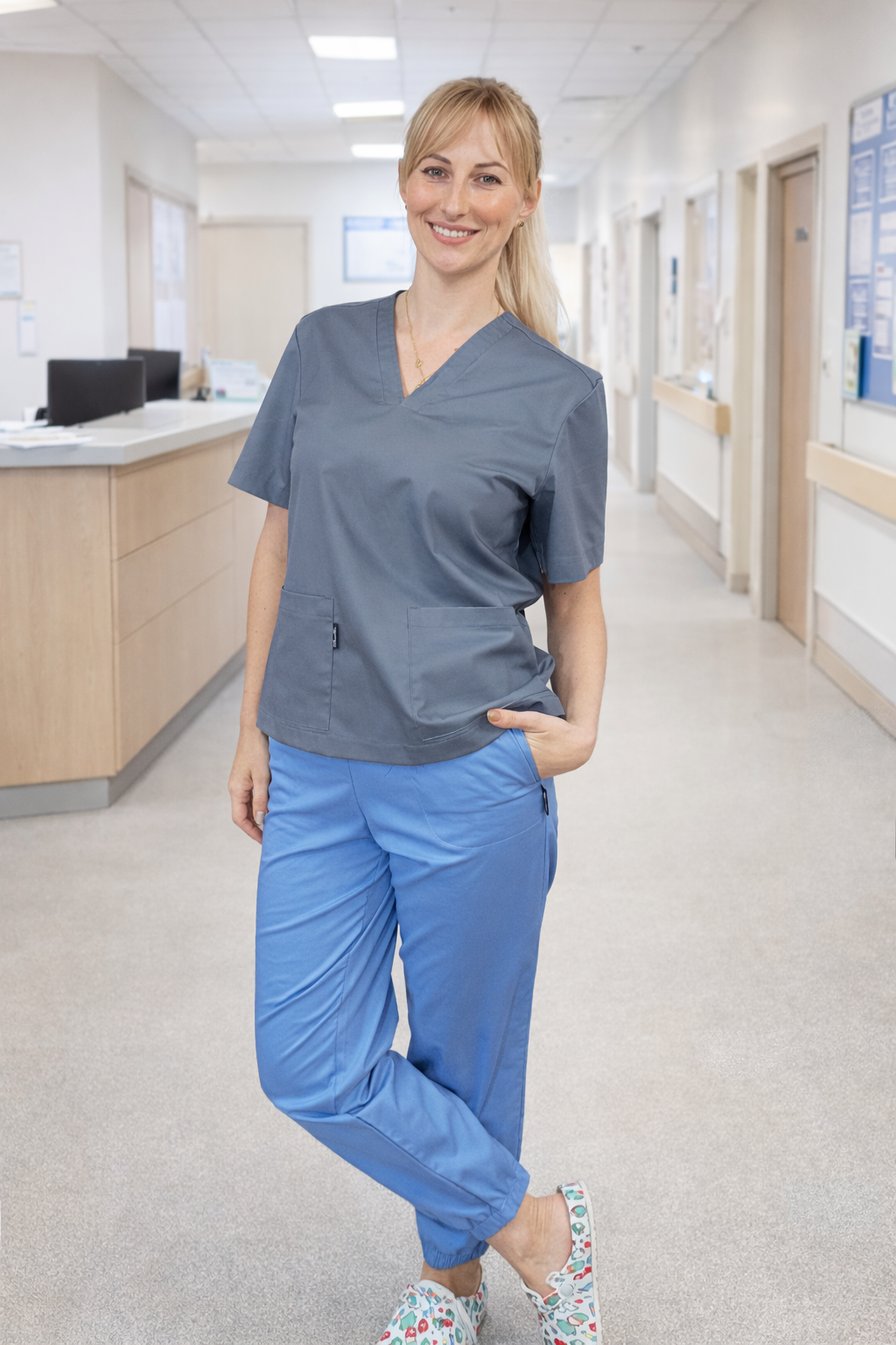 Zapewnij sobie wygodę i funkcjonalność dzięki spodniom medycznym o luźnym kroju. Doskonałe dla osób, które cenią komfort w wymagającym środowisku pracy.