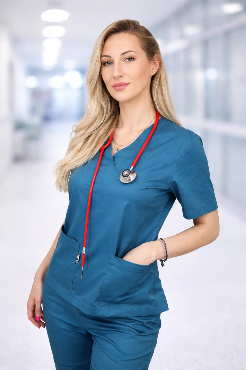 Bluza z serii SHORT to połączenie wygody, funkcjonalności i kobiecego stylu – idealna dla profesjonalistek w środowisku medycznym.