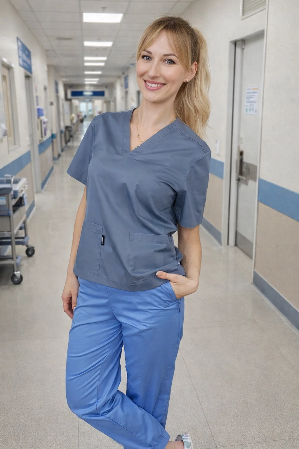 Bluza z serii SHORT to połączenie wygody, funkcjonalności i kobiecego stylu – idealna dla profesjonalistek w środowisku medycznym.