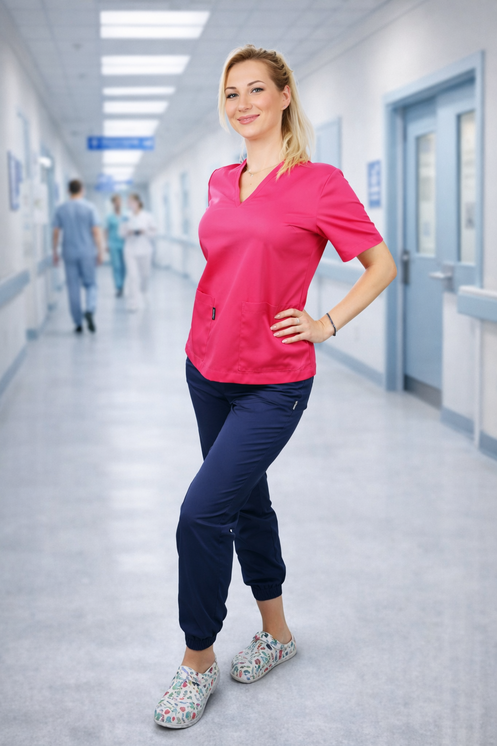Bluza z serii SHORT to połączenie wygody, funkcjonalności i kobiecego stylu – idealna dla profesjonalistek w środowisku medycznym.